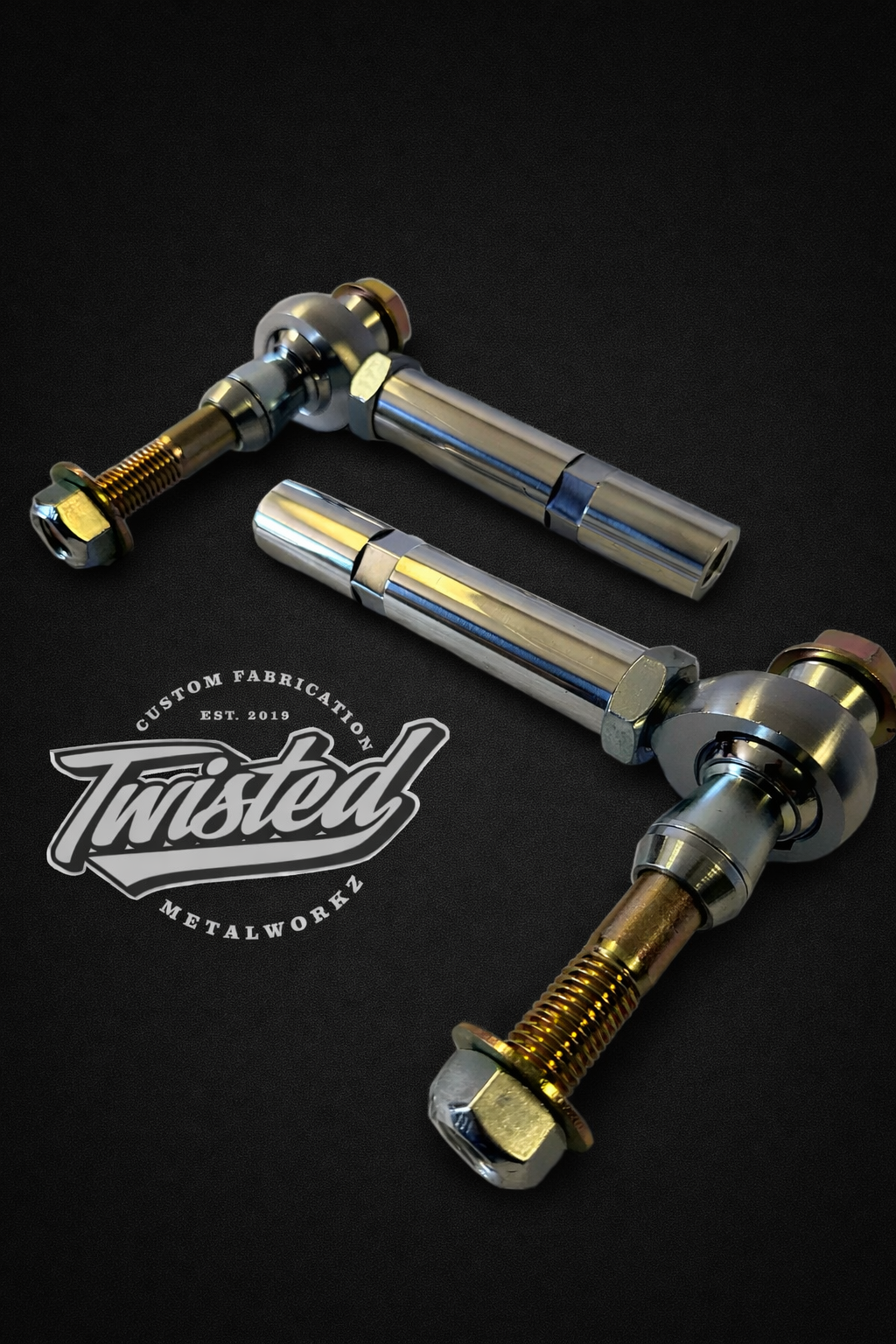 Our Bumpsteer Kits are designed to remove Bumpsteer from your bagged or static dropped truck and Lifted truck. A quick way to determine if your truck needs a kit is by simply looking at your outer tie rod while the truck is on the ground. If the tie rod is at a bad angle somewhat to the pictures below you are probably experiencing Bumpsteer. Our kit is relatively easy to install and should be professionally aligned after installation.